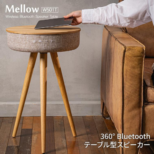 360°Bluetoothテーブル型スピーカー Mellow W501T WT-W501TS Welle ワイヤレス充電 再生用USBポート搭載 高音質スピーカー