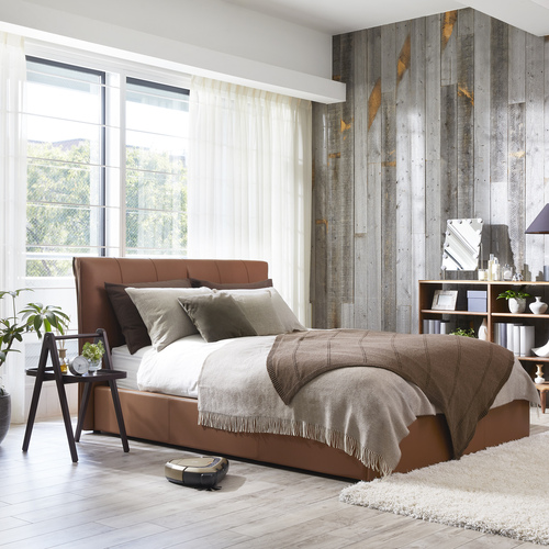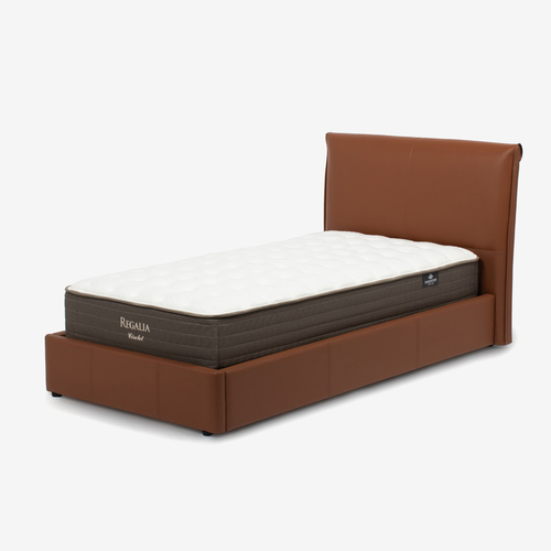 大塚家具[シングル]ベッドフレーム「モルト」半革張り ブラウン色 ※ボトムクッション落し込みタイプ マットレスとボトムクッションは別売