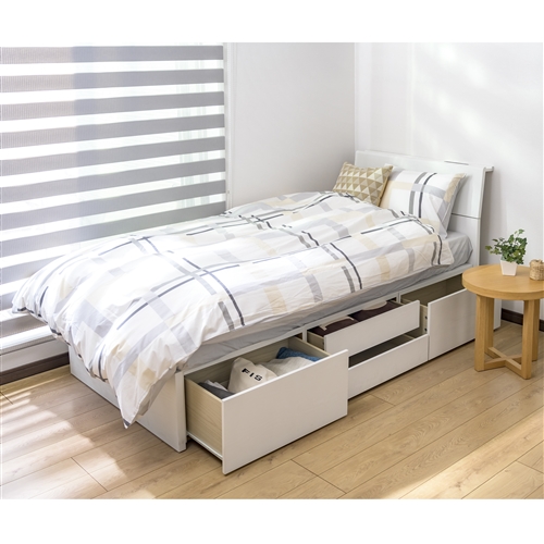 [シングル]ヤマダオリジナル 引き出し付ベッドフレーム(シングル)ホワイト