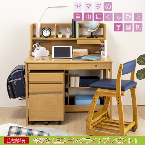 ヤマダオリジナル 自由にくみかえ学習机 天然木ライトブラウン LEDデスクライト付き YGDK700002LBR+C35713ALX ※チェア別売