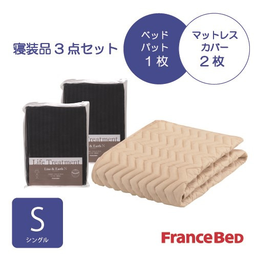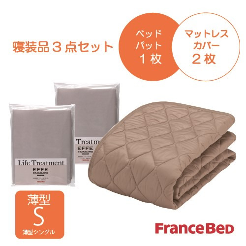 フランスベッド セレクト3点セット グッドスリープバイオベッドパット1枚 マットレスカバー 2枚 シングル ベージュ