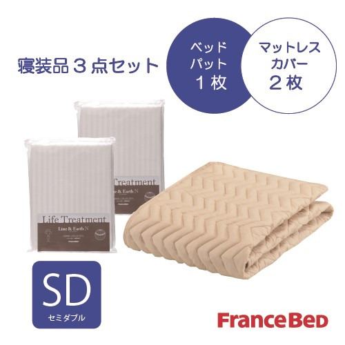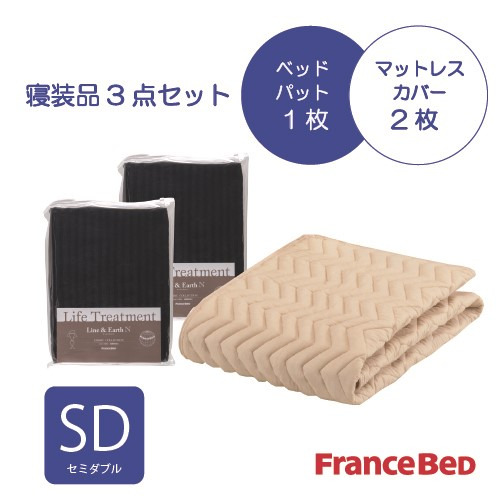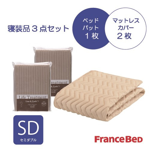 フランスベッド セレクト3点セット グッドスリープバイオベッドパット1枚 マットレスカバー2枚 セミダブル ベージュ