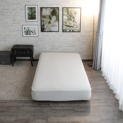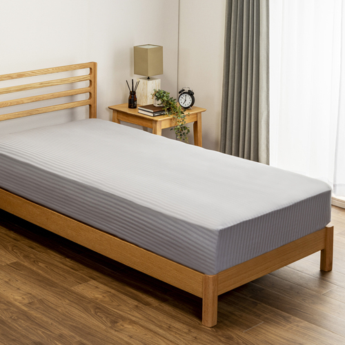 [シングル] 綿サテンストライプ BOXシーツS IGY ヤマダオリジナル アイスグレー