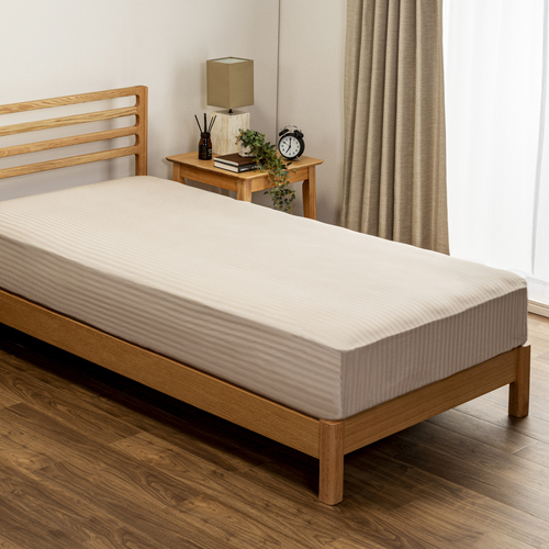 [シングル] 綿サテンストライプ BOXシーツS BE ヤマダオリジナル ベージュ