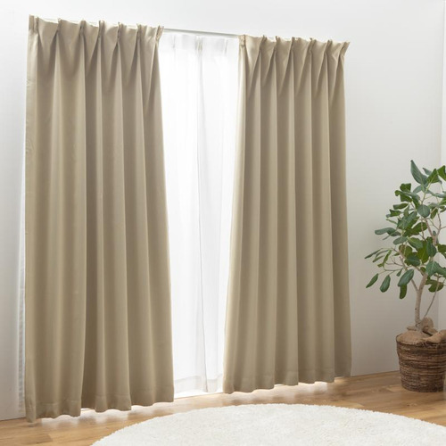 ユニベール 1級遮光2枚セットカーテン ブリンク 幅150X丈178cm(レース176cm) ベージュ