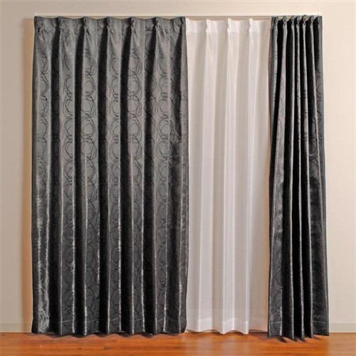 [100×178]遮光・防炎カーテンフーガ ブラック 2枚入 形状記憶加工 ウォッシャブル