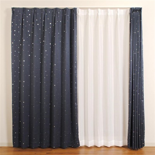 [100×178]ドレープ 遮光 カーテン キロロ 2枚入 ネイビー
