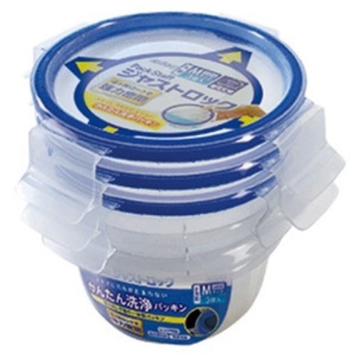 エビス 保存容器 パックスタッフ ジャストロック 丸型 M (3個入) ブルー 1個