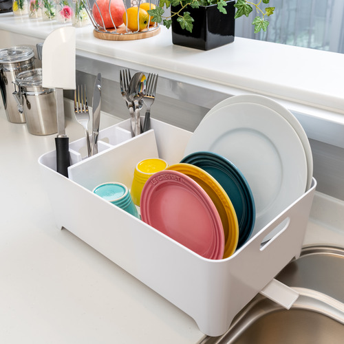 [幅42×奥行23×高さ17cm] キッチン 水切りかご ラック水はけ付き 仕切り付き AQUA アクア ホワイト