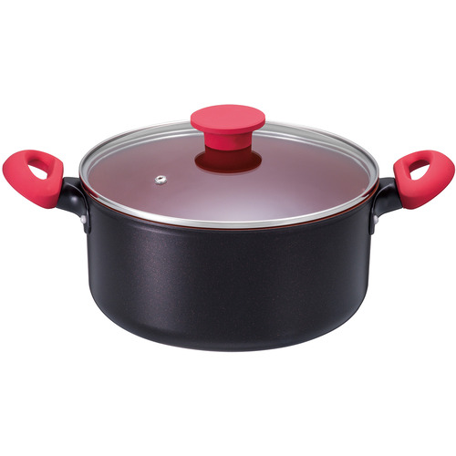パール金属 無水調理ができるセラミック加工IH対応両手鍋22cm レッド HB5726