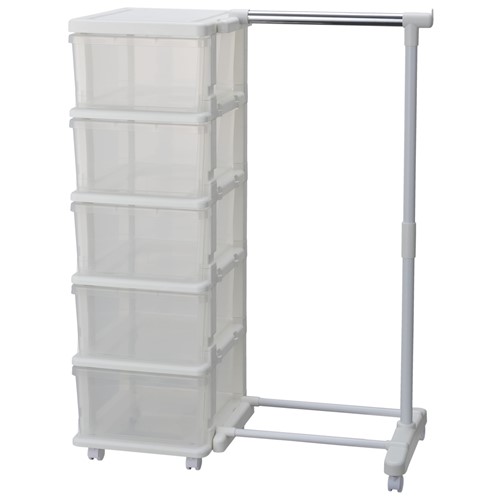 収納 チェスト キャスター付き ハンガーバー付き シーズユニット 5段 ホワイトクリア
