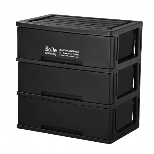 ベストコ Boiteリビング3段収納ワイド ブラック MA-4044