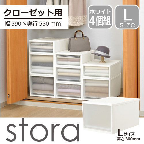【セット特価】4個組収納ケース プラスチック クローゼット用 ストラ53 Lサイズ ホワイト [幅39×奥行53×高さ30cm] JEJアステージ