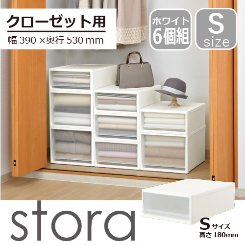 【セット特価】6個組 収納ケース プラスチック クローゼット用 ストラ53 Sサイズ ホワイト 引き出し[幅39×奥行53×高さ18cm] JEJアステージ