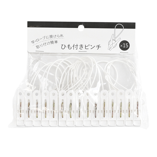 ヤマダオリジナル ひも付き洗濯ばさみ15P WH