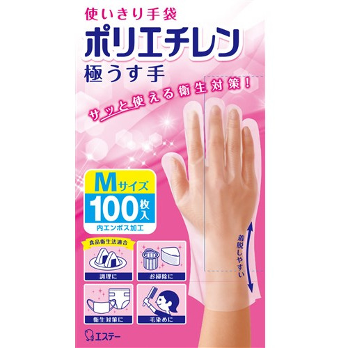 エステー 使い切り手袋ポリエチレン極うす手M半透明 ツカイキリ手袋 100枚 半透明