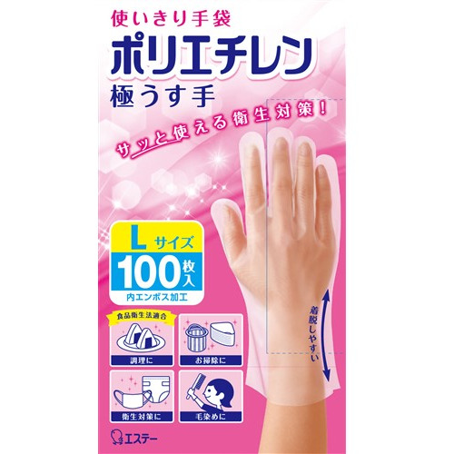 エステー 使い切り手袋ポリエチレン極うす手L半透明 ツカイキリ手袋 100枚 半透明