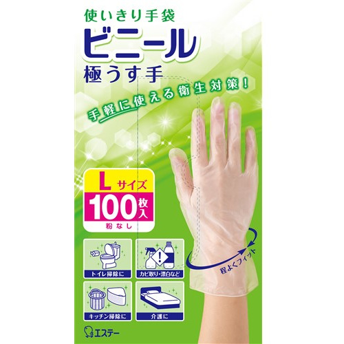 エステー 使い切り手袋ビニール極うす手L半透明 ツカイキリ手袋 100枚 半透明