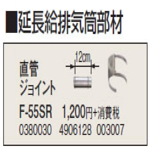 コロナ F-55SR 暖房器具用部材 延長給排気筒部材 直管ジョイント 12cm