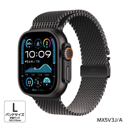 アップル(Apple) MX5V3J/A Apple Watch Ultra 2(GPS + Cellularモデル) 49mm ブラックチタニウムケースとブラックチタニウムミラネーゼループ L