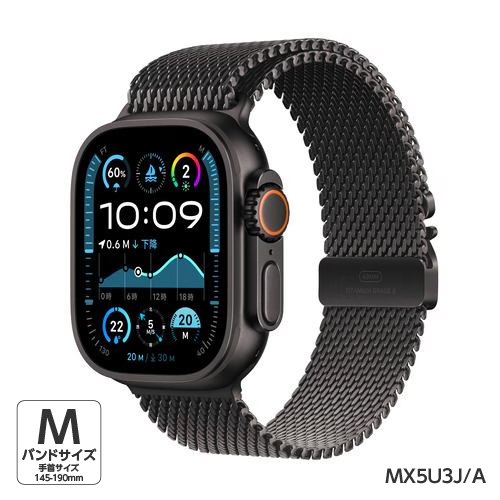 アップル(Apple) MX5U3J/A Apple Watch Ultra 2(GPS + Cellularモデル) 49mm ブラックチタニウムケースとブラックチタニウムミラネーゼループ M