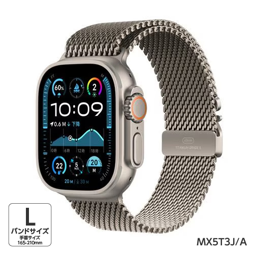 アップル(Apple) MX5T3J/A Apple Watch Ultra 2(GPS + Cellularモデル) 49mm ナチュラルチタニウムケースとナチュラルチタニウムミラネーゼループ L