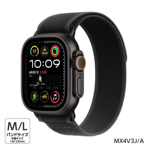 アップル(Apple) MX4V3J/A Apple Watch Ultra 2(GPS + Cellularモデル) 49mm ブラックチタニウムケースとブラックトレイルループ M/L