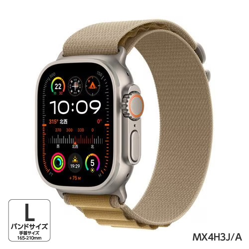 アップル(Apple) MX4H3J/A Apple Watch Ultra 2(GPS + Cellularモデル) 49mm ナチュラルチタニウムケースとタンアルパインループ L