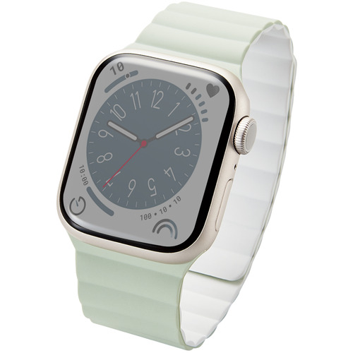 エレコム AW-41BDMAGGN Apple Watch 41/40/38mm/バンド/マグネット/シリコン/グリーン×ホワイト AW41BDMAGGN