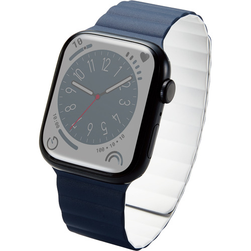エレコム AW-45BDMAGNV Apple Watch 49/45/44/42mm/バンド/マグネット/シリコン/ネイビー×ホワイト AW45BDMAGNV