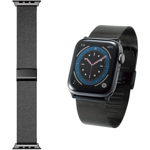 エレコム AW-44BDSS1BK アップルウォッチ バンド SE/Series 7/6/5/4/3/2/1 [ 45mm 44mm 42mm ] ステンレス 1連 Apple Watch モデル番号[ A2474 A2352 A2292 等] ブラック
