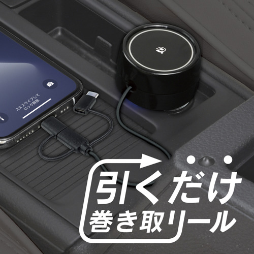 セイワ AL362 シートオーガナイザー+Wリールチャージャー ケーブル長80cm ブラック