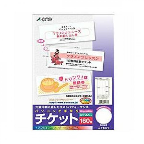 エーワン 51471 パソコンで手作りチケット ( A4判 / 5面 / 20シート ) ホワイト
