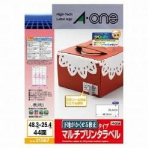 エーワン 31567 マルチプリンタラベル 下地がかくせる修正タイプ 48.3mm×25.4mm 44面 12シート
