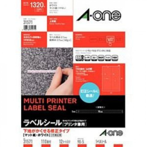 エーワン 31571 マルチプリンタラベル 下地がかくせる修正タイプ (A4・110面×12シート)