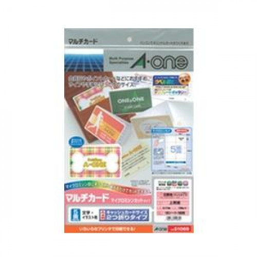 プリンター用紙 エーワン マルチカード 51069 各種プリンタ兼用紙 A4判 / 5面 / キャッシュカードサイズ 2つ折りタイプ / 10シート