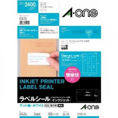 エーワン 61424 ラベルシール [インクジェット] マット紙 四辺余白付 角丸 A4サイズ 100シート(2400片)入り