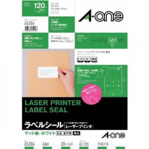 エーワン 65206 ラベルシール[レーザープリンタ] マット紙 A4サイズ 四辺余白付 角丸 20シート(120片)入り