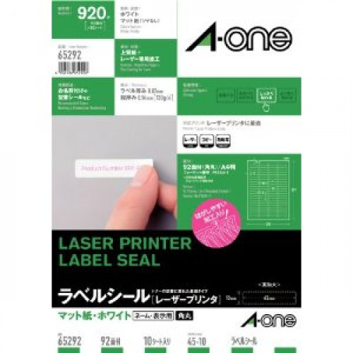 エーワン 65292 ラベルシール[レーザープリンタ] マット紙 A4サイズ 四辺余白付 角丸 10シート(920片)入り