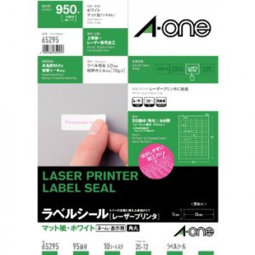 エーワン 65295 ラベルシール[レーザープリンタ] マット紙 A4サイズ 四辺余白付 角丸 10シート(950片)入り