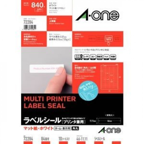エーワン ラベルシール プリンタ兼用 マット紙・ホワイト・ A4判 84面 四辺余白付 角丸・10シート 840片