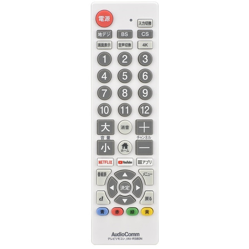 オーム電機 AV-R580N-W シンプルテレビリモコン ホワイトAVR580NW