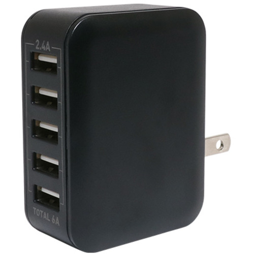 ミヨシ IPA-60U2/BK 5V6A対応 USB-ACアダプタ 5ポートタイプ ブラック IPA60U2/BK