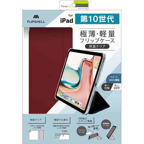 トリニティ iPad(第10世代)背面クリア フリップシェルケース ワインレッド TR-IPD2410-FS-SMWR