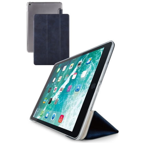 エレコム TB-A19RWVNVN iPad 10.2インチ 第9/8/7世代 (2021/2020/2019年) 用 フラップケース 背面クリア ソフトレザー ネイビー