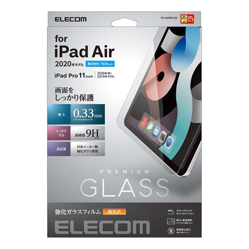 エレコム TB-A20MFLGG iPad Air 10.9インチ(第4世代・2020年モデル)用 ガラスフィルム 0.33mm