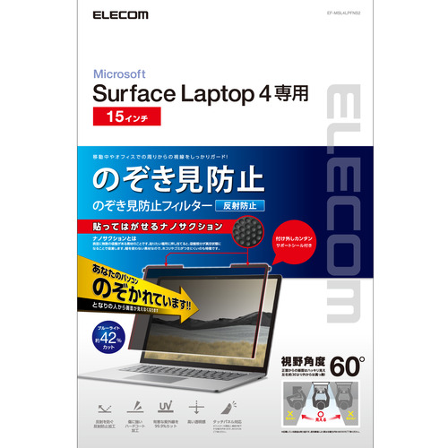 エレコム EF-MSL4LPFNS2 Surface Laptop 4 のぞき見防止フィルタ ナノサクション 15インチ