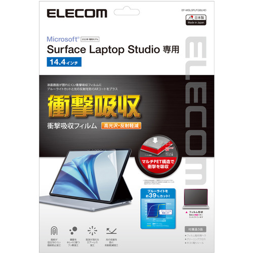 エレコム EF-MSLSFLFGBLHD Surface Laptop Studio用 液晶保護フィルム 高光沢 衝撃吸収 ブルーライトカット EFMSLSFLFGBLHD