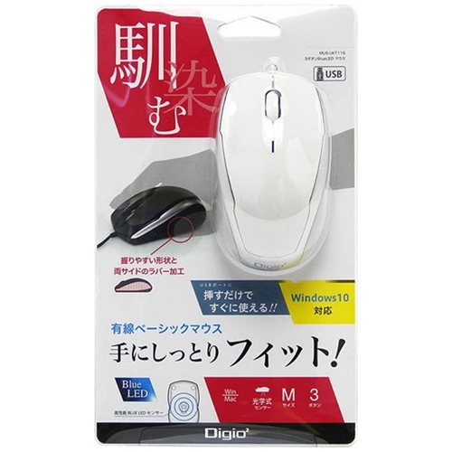 ナカバヤシ MUS-UKT115W 有線BlueLEDマウス ベーシック(3ボタン/ホワイト)