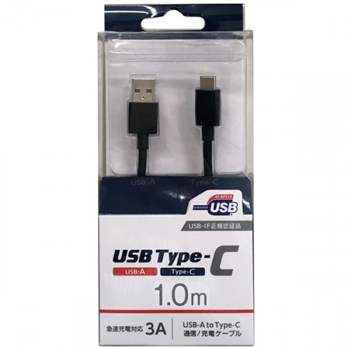 オズマ UD-3CS100K スマートフォン用USBケーブル A to C タイプ 認証品 1.0m ブラック